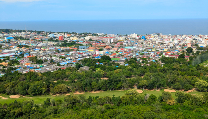 Utsikt fra Khao Hin Lek Fai mot Wat Khao Takiap.